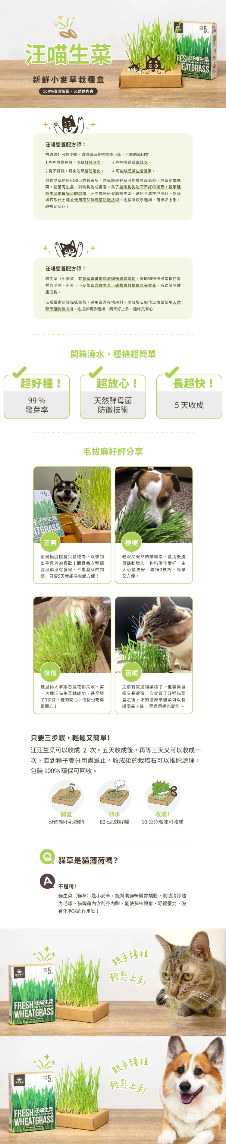 內容物:頂級燕麥草種子、蛭石、栽培皿