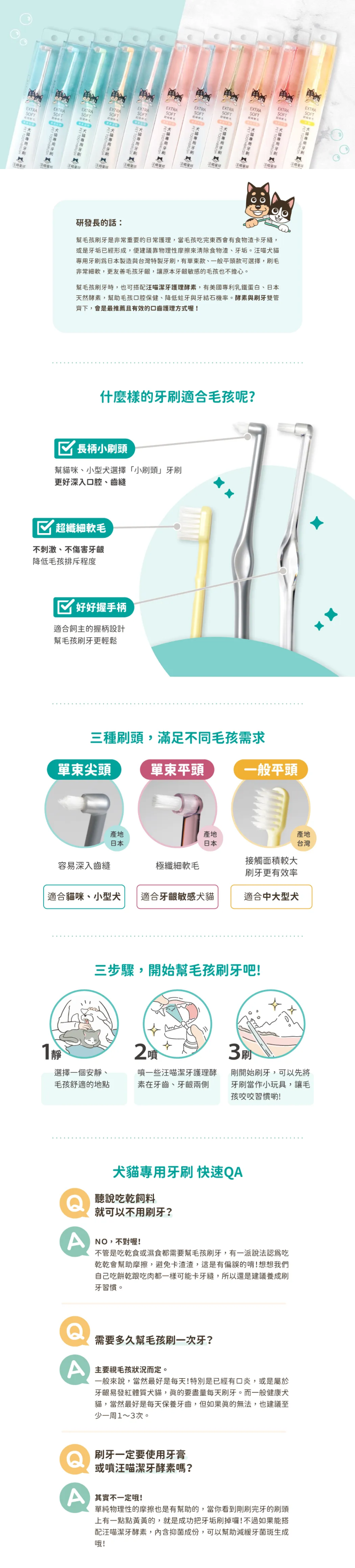☑︎ 單束設計+細軟毛,不刺激毛孩牙齦