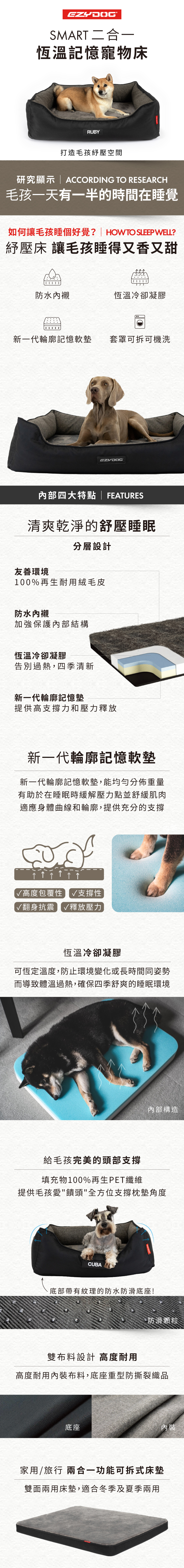 澳洲EZYDOG二合一Smart恆溫記憶寵物床