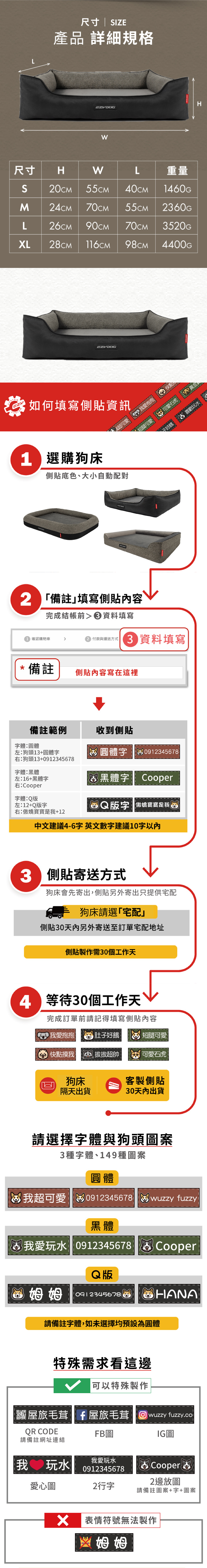 送客製化側貼1片,讓您的寵物享受最愜意的睡眠時光。