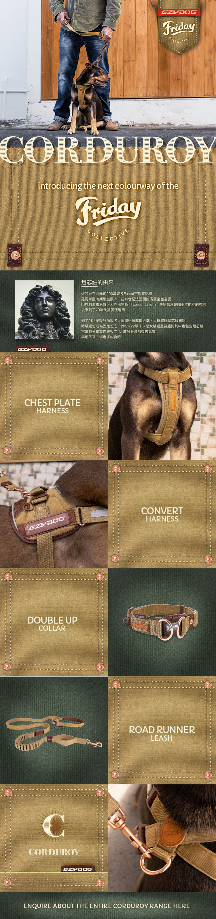 【澳洲EZYDOG】終極胸背帶|燈芯絨 ※買就送客製側貼一組兩片(期間限定)