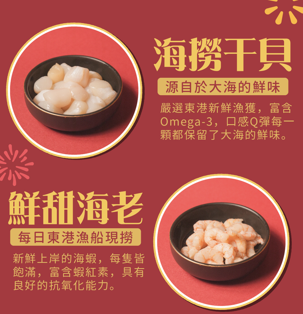 雞腿 × 澎湖小卷 × 干貝 × 蝦仁