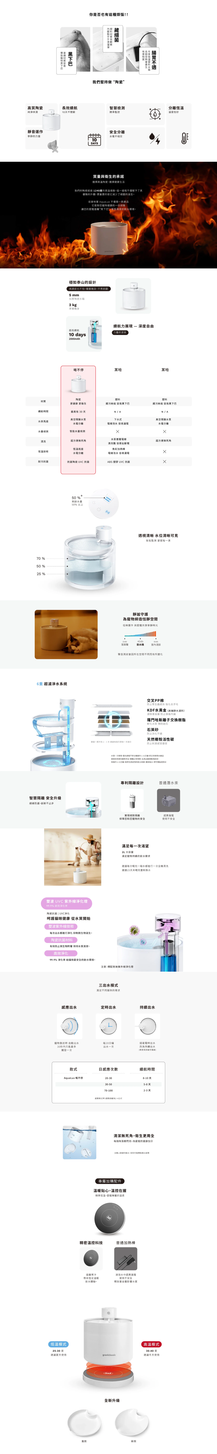 智能無線:不需插電,感應出水技術續航高達10天,自由自在。