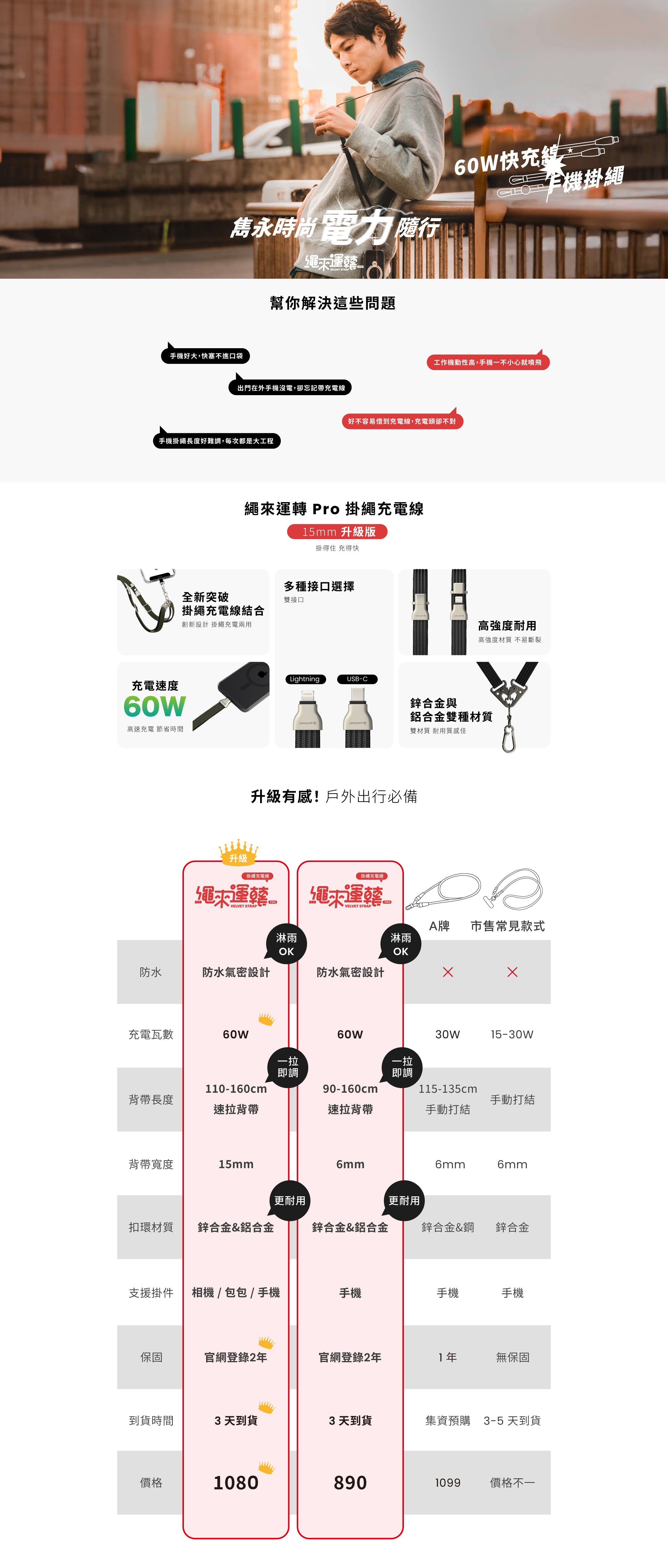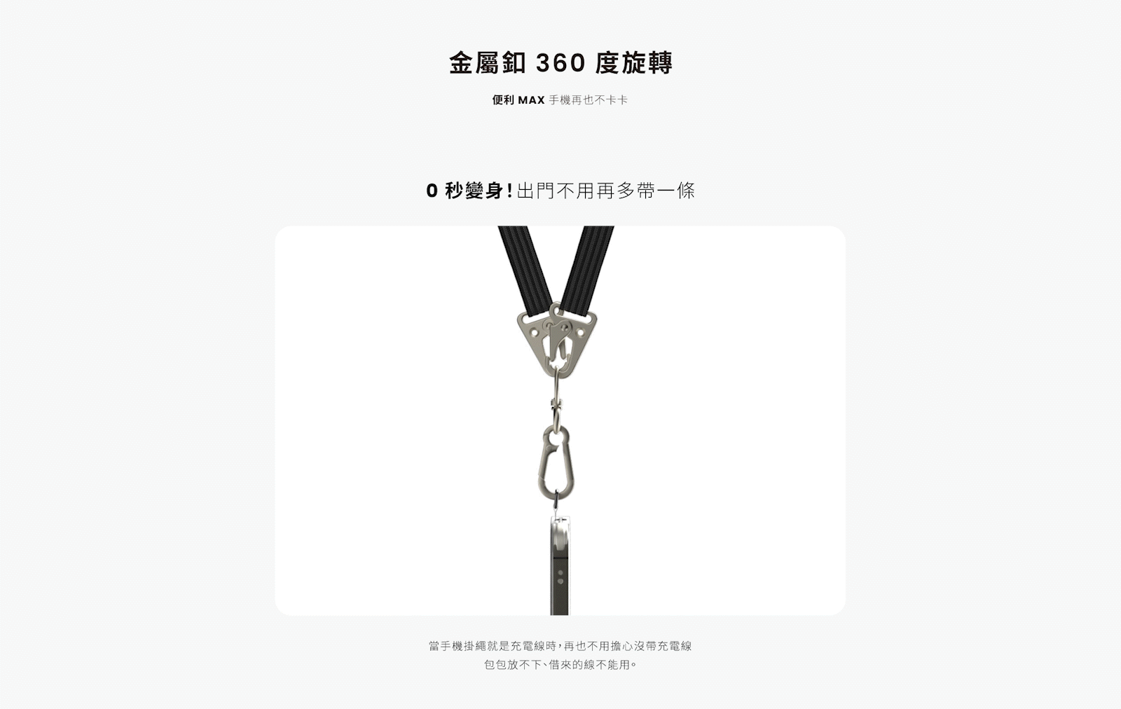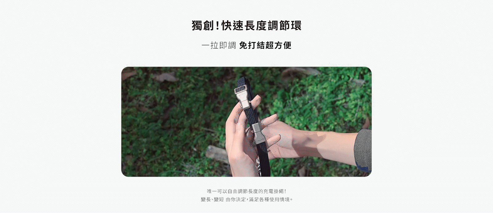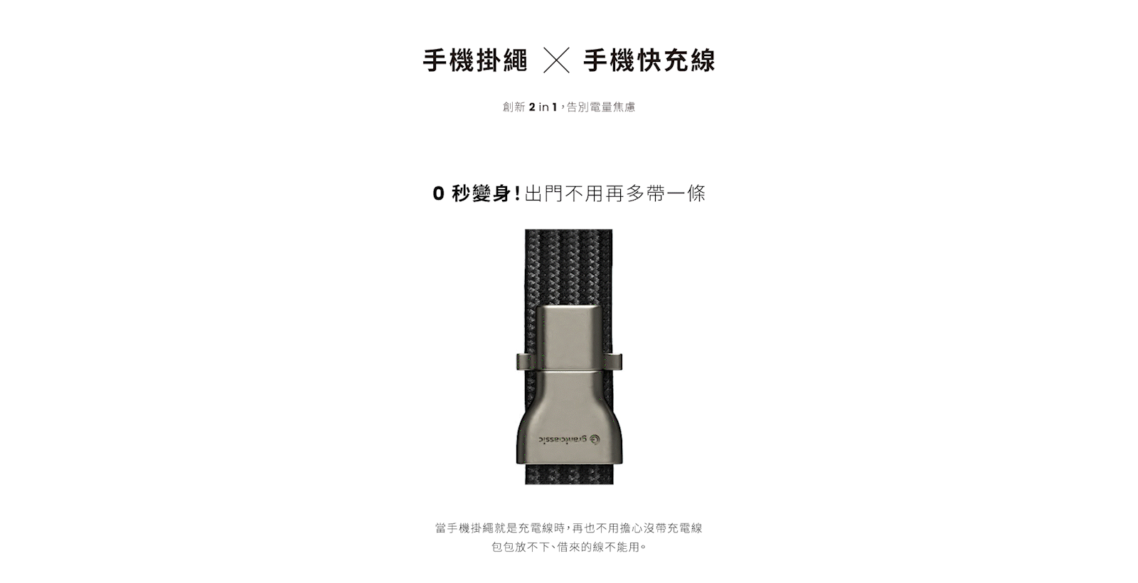 ▸全新突破 掛繩充電線結合|創新設計,掛繩充電兩用。