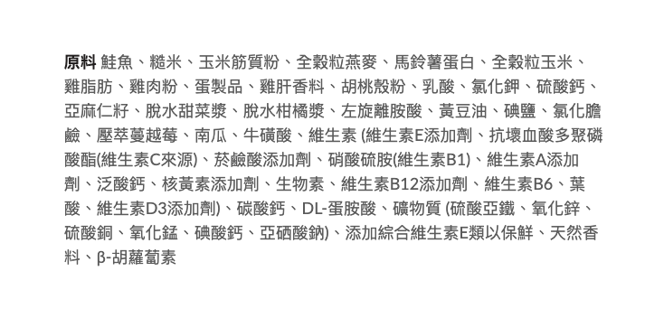 獨家益生纖維混和配方,含有全穀粒燕麥、南瓜等食材