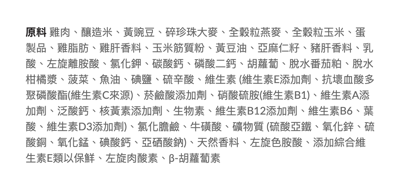 ☑︎ Omega-3及 6 脂肪酸,幫助皮毛亮麗
