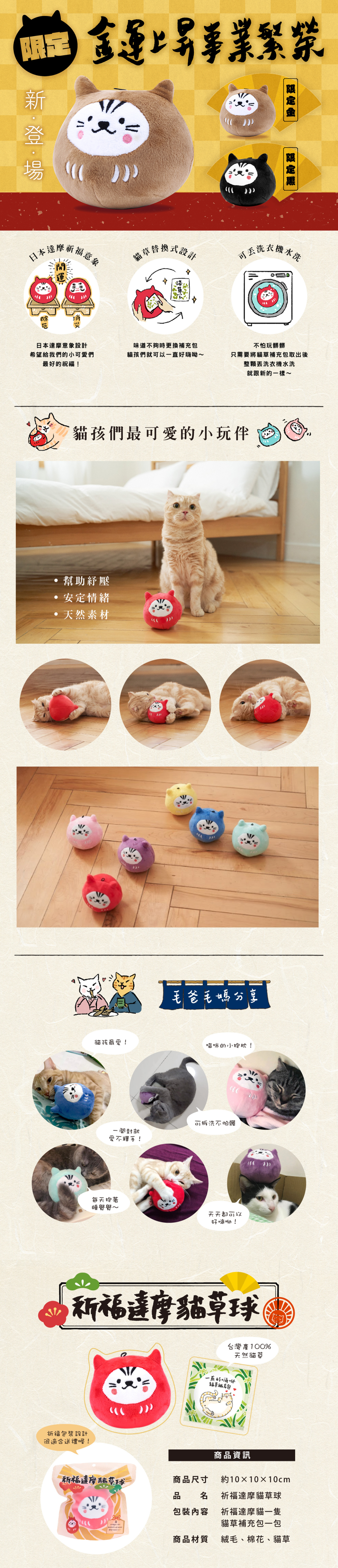 內容物:祈福達摩貓x1 貓草補充包x1