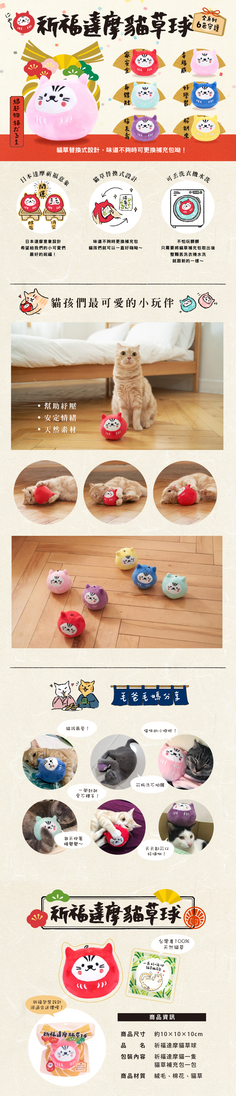 內容物:祈福達摩貓x1 貓草補充包x1