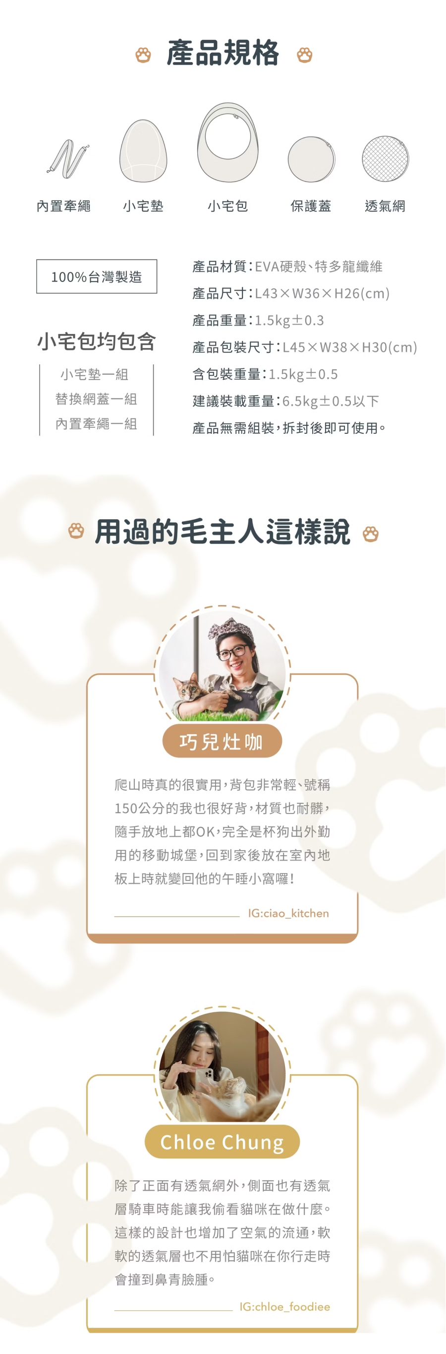 商品包含:小宅墊*1組、替換網蓋*1組、內置牽繩*1組