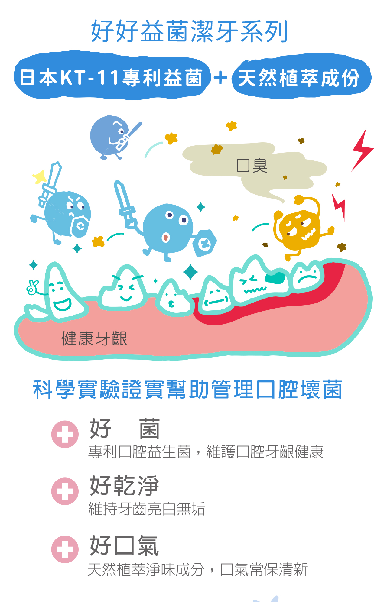◆好菌:專利口腔益生菌KT-11,臨床證實有效維護口腔牙齦健康