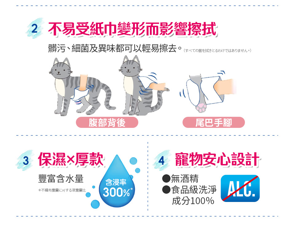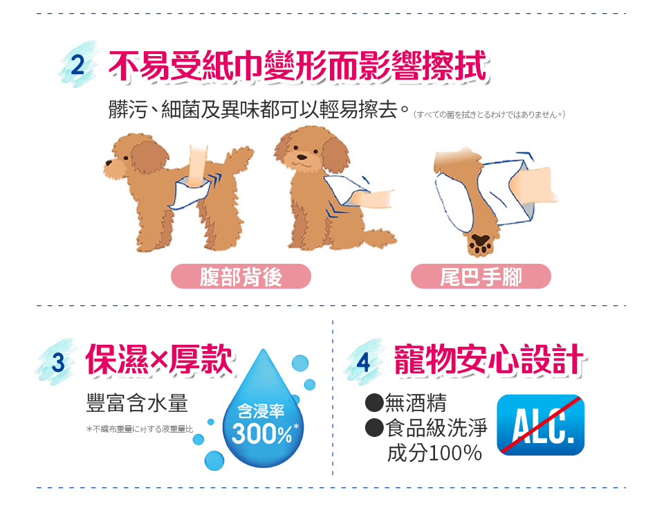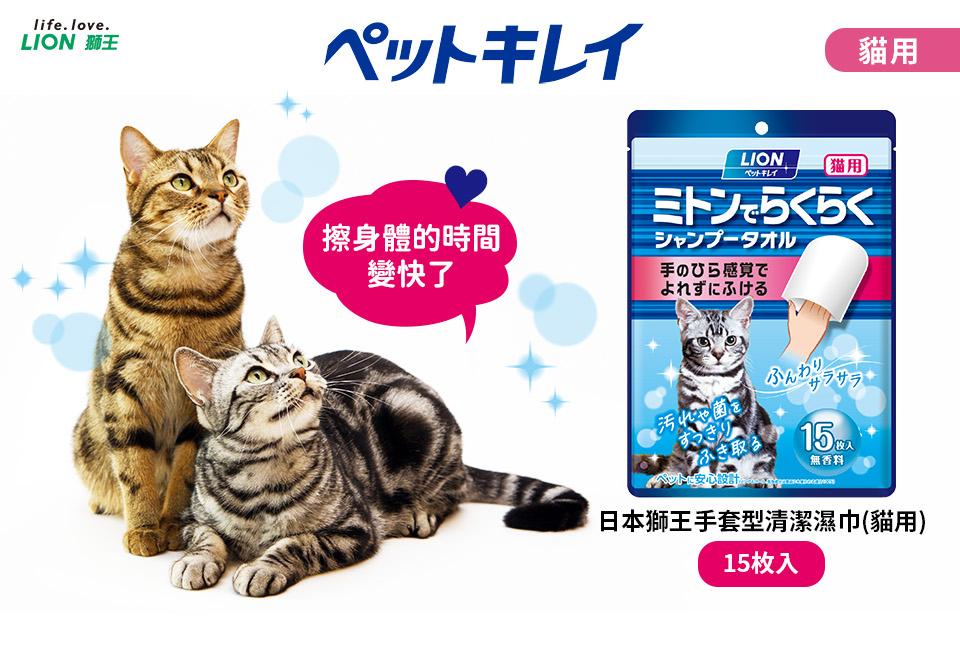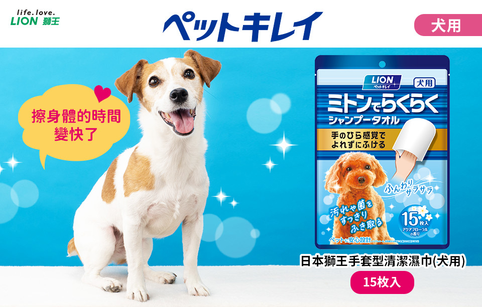 使用方法:掌套入手套,輕輕擦拭毛小孩身體表面