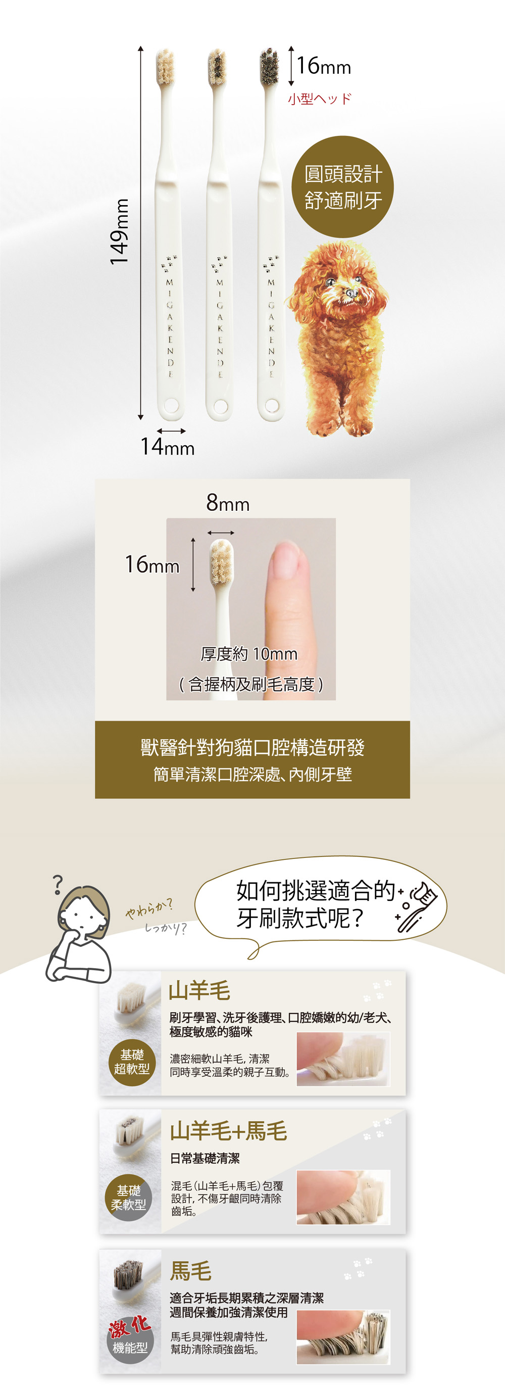 ☑︎ 滿足狗貓口腔構造,16mm圓頭設計,簡單清潔口腔深處、內側牙壁