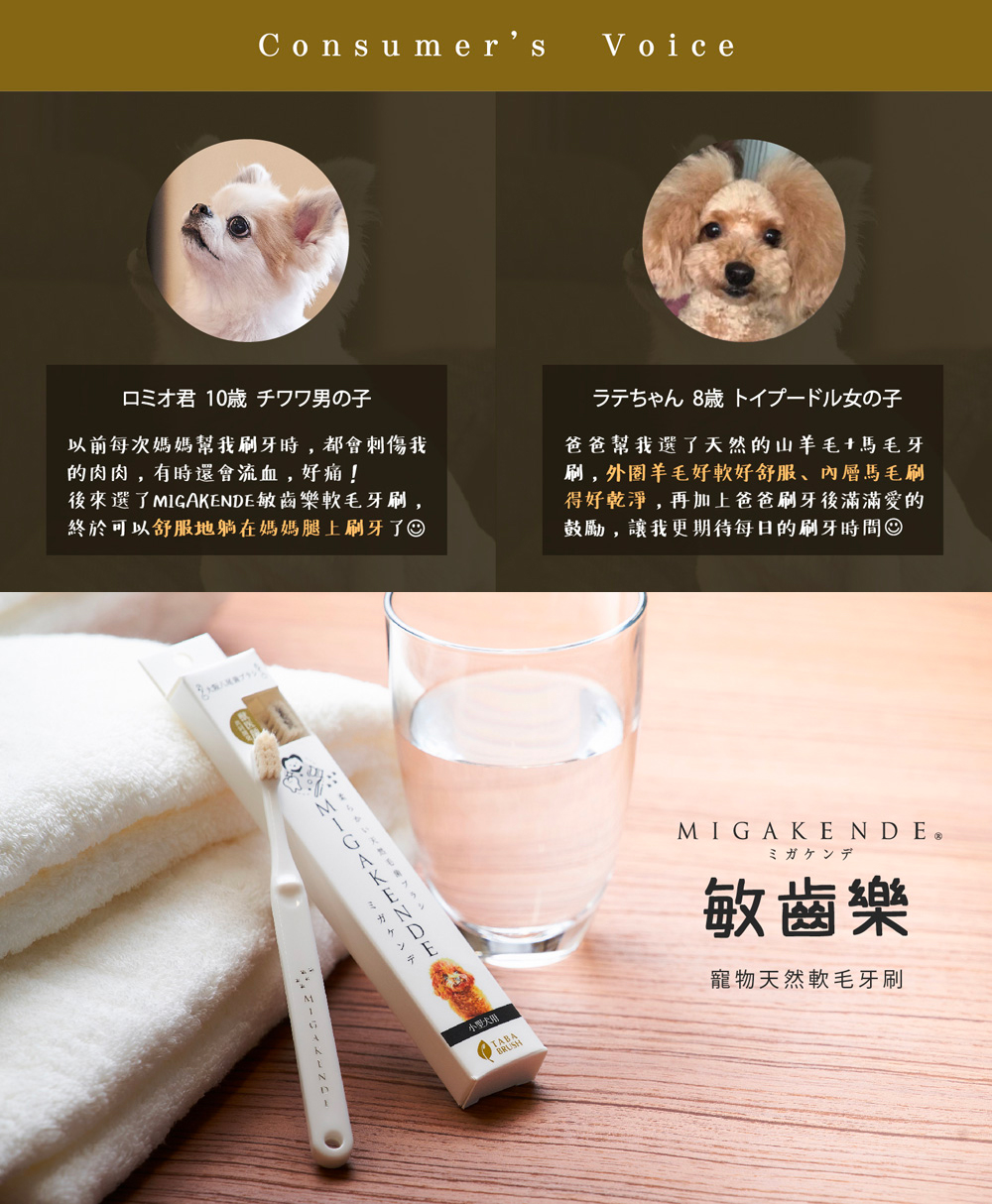 混毛(山羊毛+馬毛)包覆設計,外層山羊毛柔軟不傷牙齦