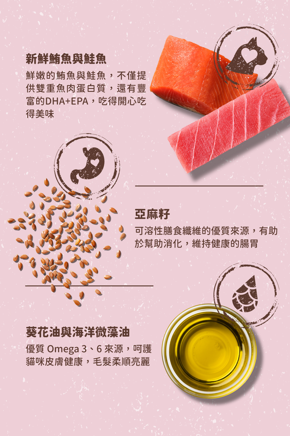 鮮嫩的鮪魚與鮭魚,不僅提供雙重魚肉蛋白質