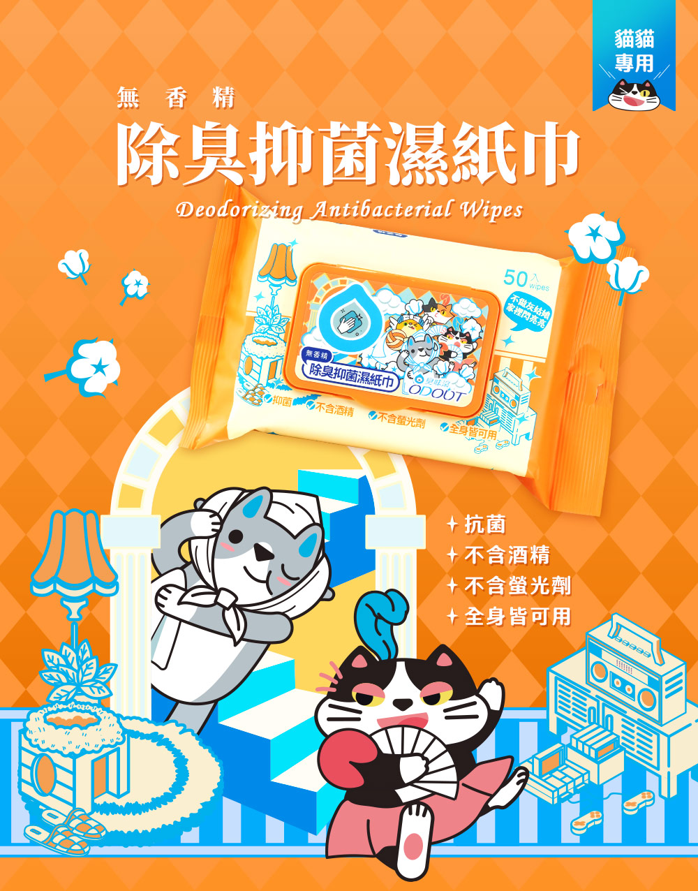 ▸喵喵專用除臭配方,消除殘留屎尿臭味