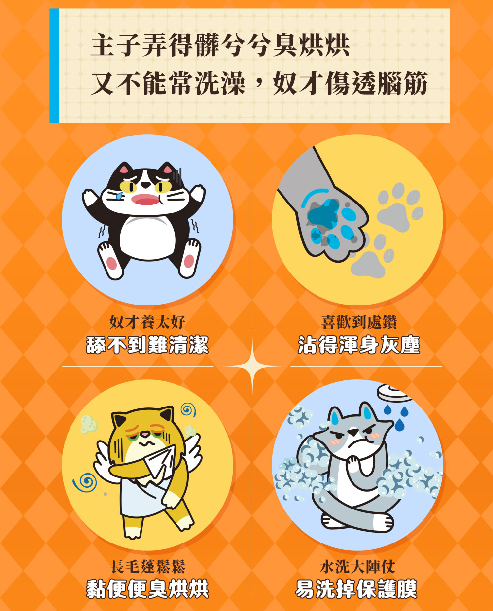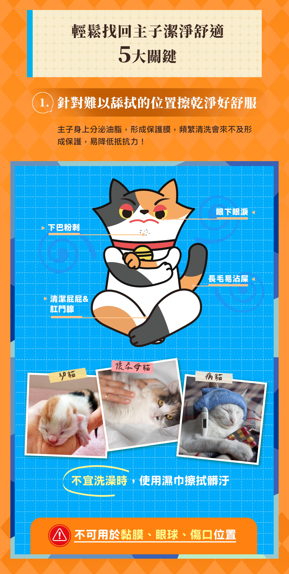 ▸針對主子難以舔舐的位置,輕鬆擦乾淨