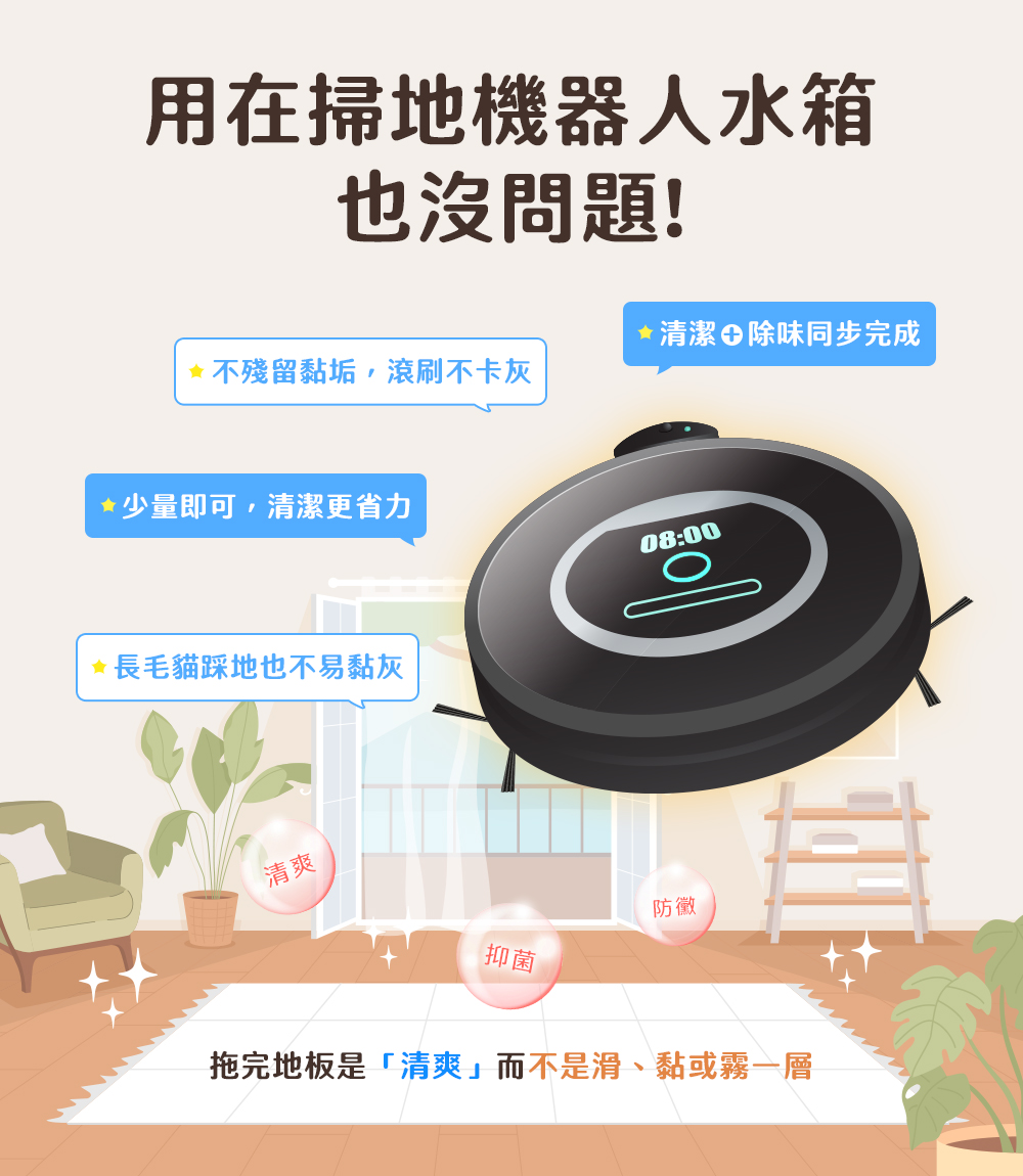 ▸清潔抑菌除臭一次完成,免回拖省時間