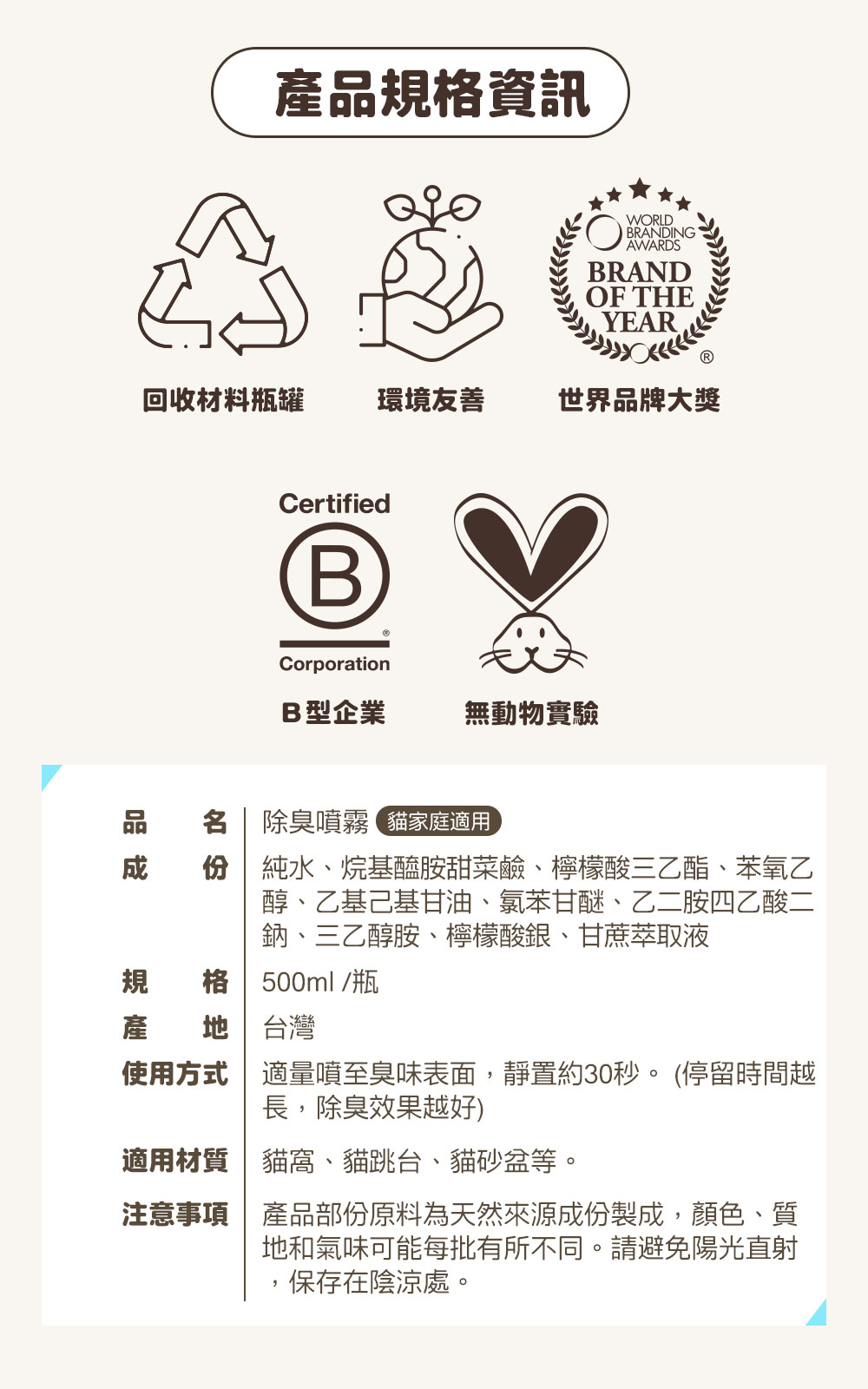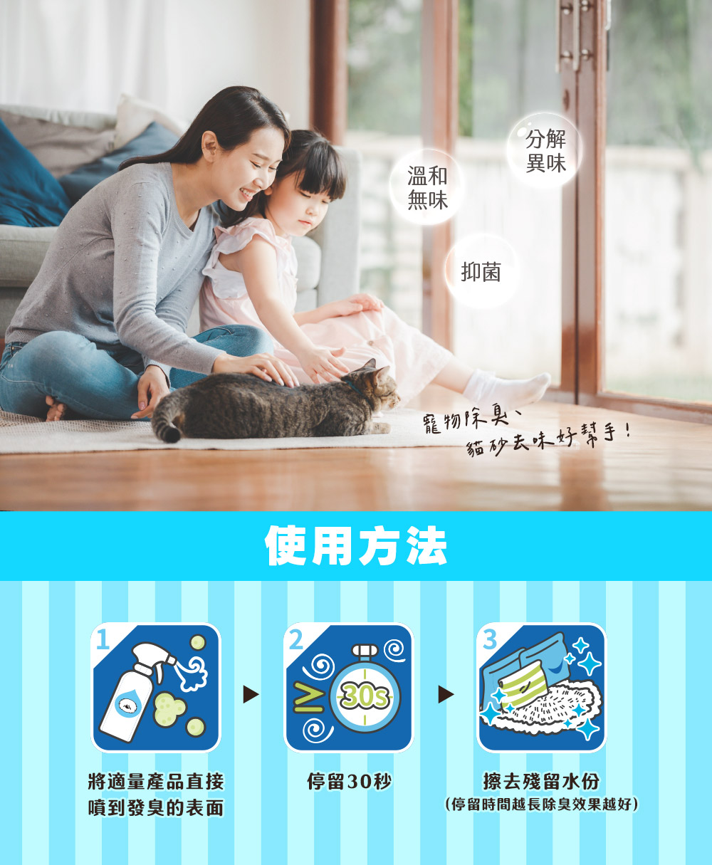 ▸採用天然植物多酚消臭成份,寵物除臭、貓砂去味好幫手