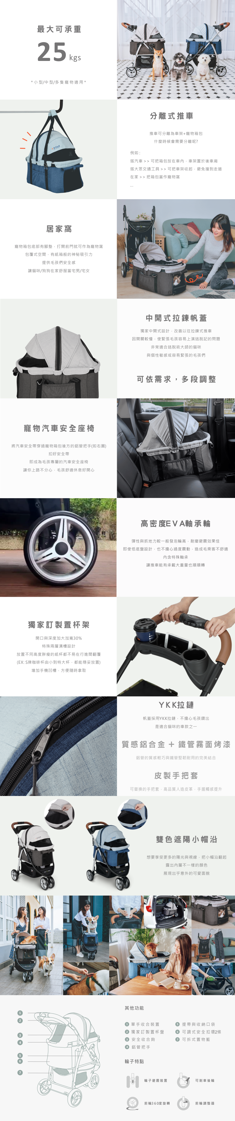 – 首款!鋁合金分離式寵物推車,可乘載25公斤