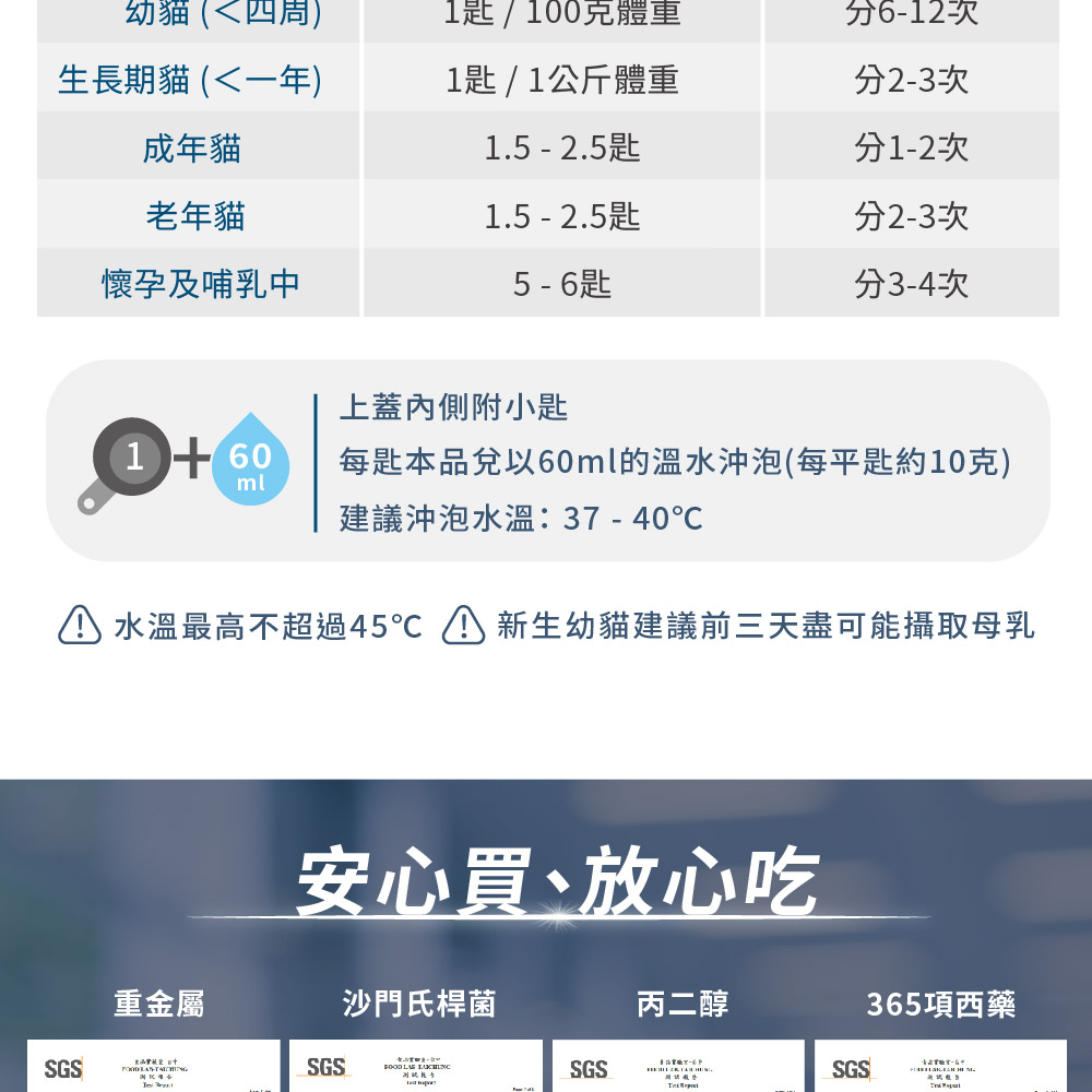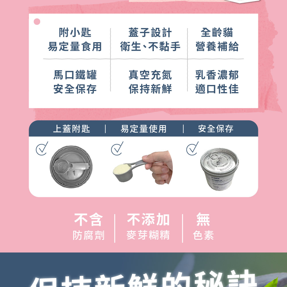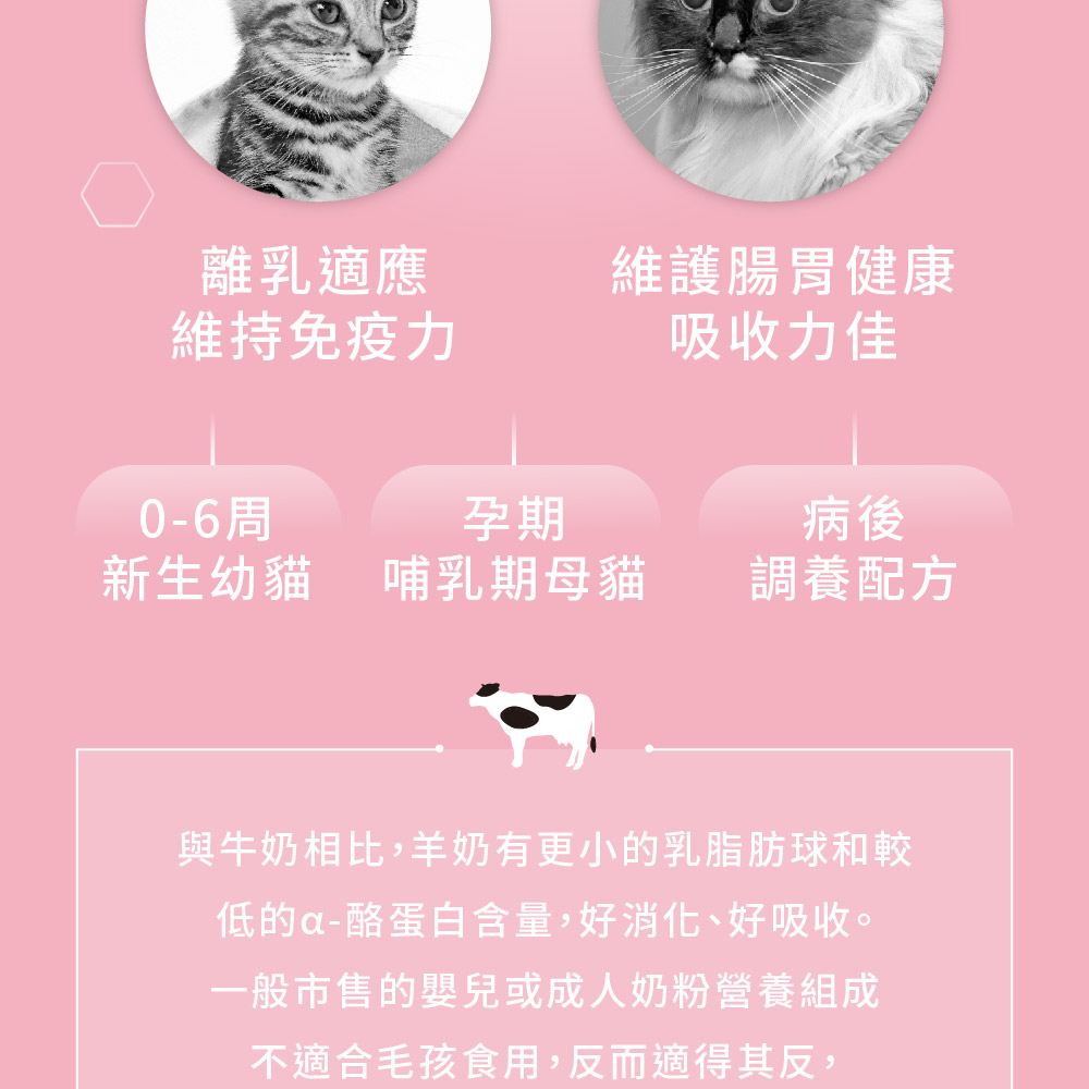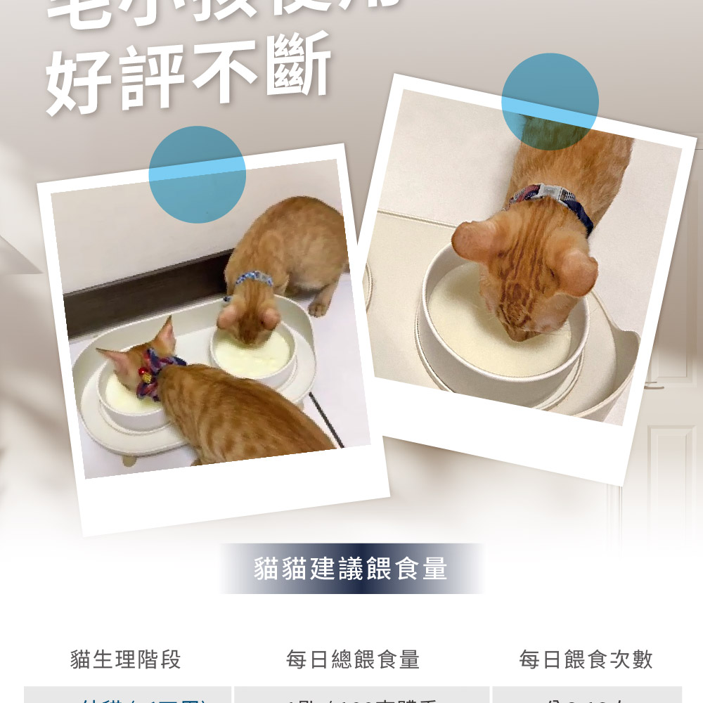 ▸適用於新生幼貓、離乳調養、奶水補充的貓及成貓日常營養品