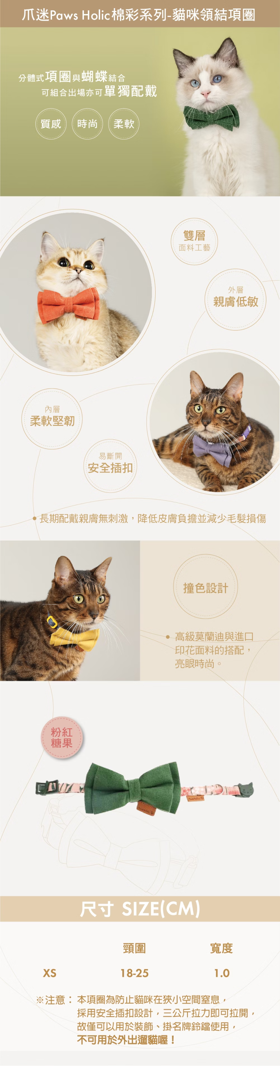 【美好毛日】Pawsholic爪迷 貓咪安全領結項圈|粉紅糖果