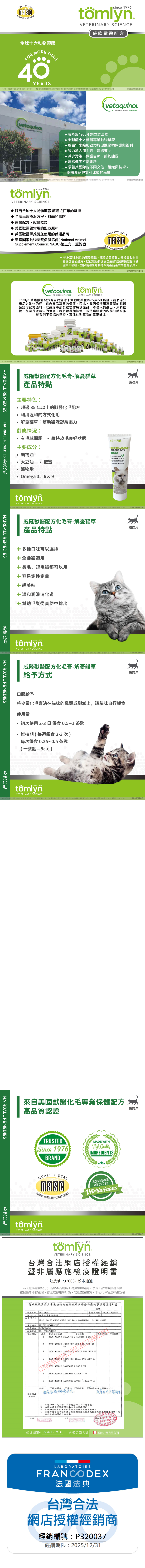 ◆專業獸醫配方,成分溫和,幫助毛髮排出體外不殘留,預防毛球症發生。